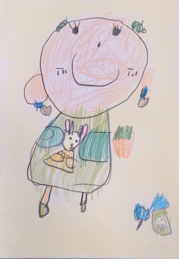 유라는 어른이 되면 동물을 사랑하는 토끼가 되고 싶다며 ...유라의 마음 속 예쁜 토끼의 모습을 표현함.